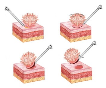 • μειωμένα ποσοστά υποτροπής όγκου σε 1 έτος (περίπου 29%) σε σύγκριση με την τυπική εκτομή (38%)