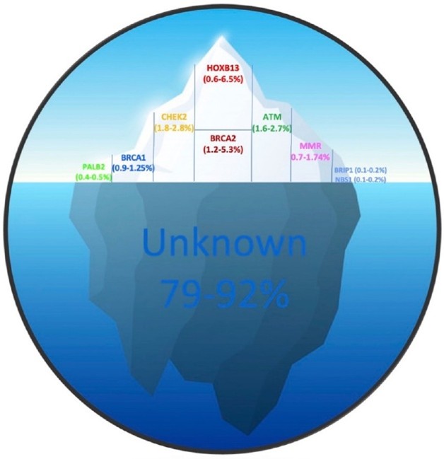 Το 58% του συνολικού κινδύνου για εμφάνιση καρκίνου του προστάτη οφείλεται σε γενετικούς παράγοντες. Αυτοί χωρίζονται σε: